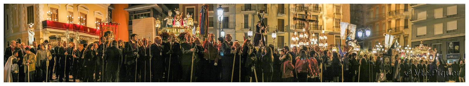 Panoràmica de totes les confraries dedicada a tots els qui han estat al peu del canó estos dies de festa intentant traure les més atrevides i personals fotos, quelcom que veig amb dificultat per...