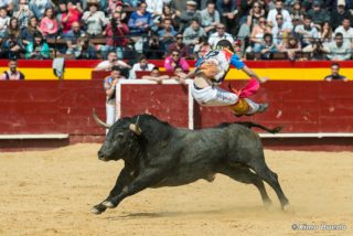 Els difícils terrenys de l’actual toreig a cavall. (cavall i cavallista se’n sortiren hàbilment) (200 mm – 1/800 s – f/2.8 – ISO 800 – 19/03/2015 13.01h)